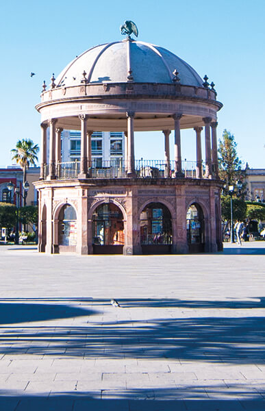 La caracteriza una bonita columna conmemorando la victoria de la restauración de la República en 1867.
