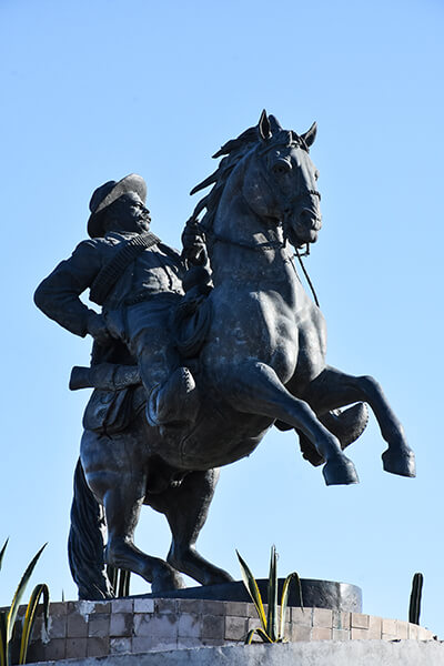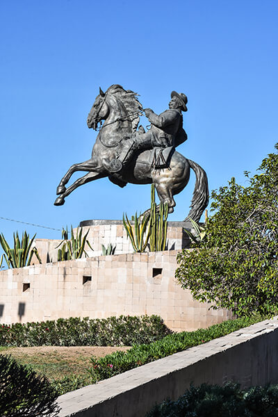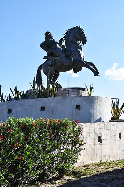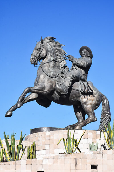 Estatua ecuestre que rinde homenaje al general revolucionario nacido en San Juan del Río, Durango.