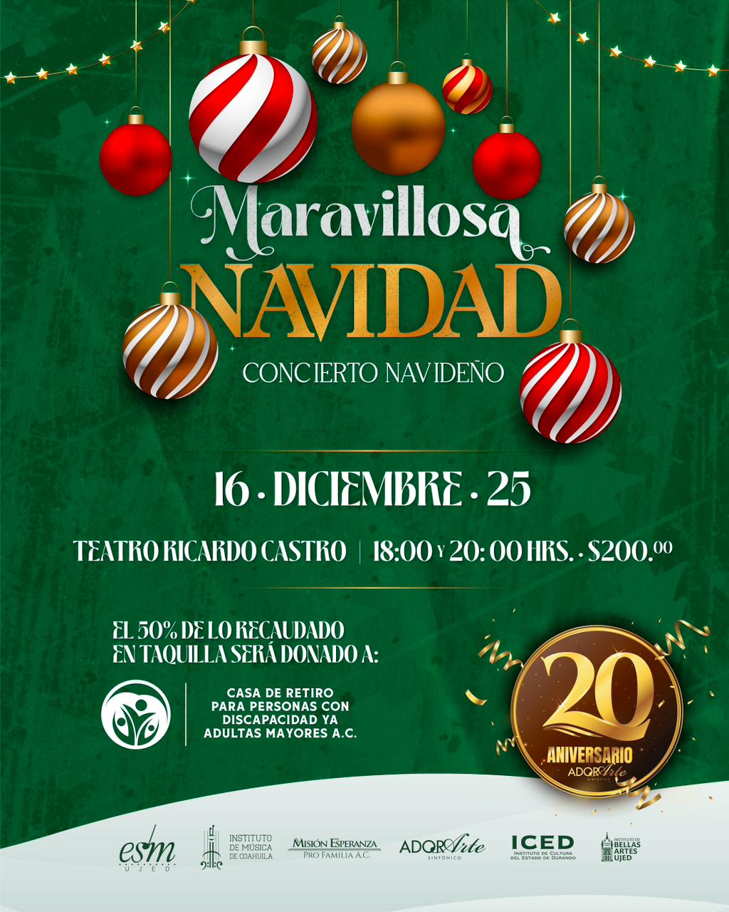 Disfruta de más de 180 artistas en vivo entre coro y orquesta, en una velada llena de música y espíritu navideño.