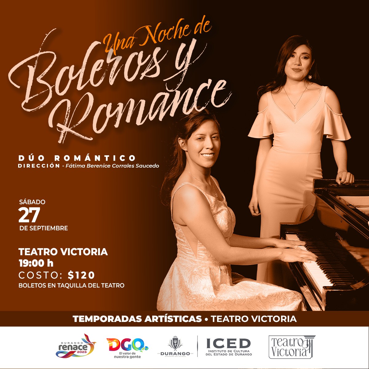 #TemporadasArtísticas Disfruta una noche de boleros y romance con el Dúo Romántico, bajo la dirección de Fátima Berenice Corrales Saucedo.